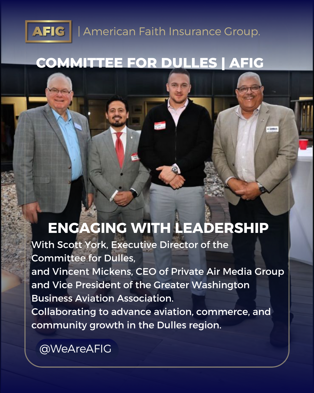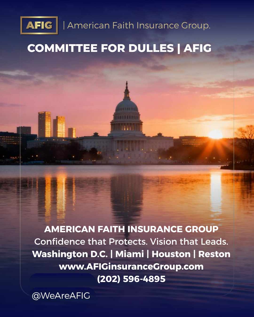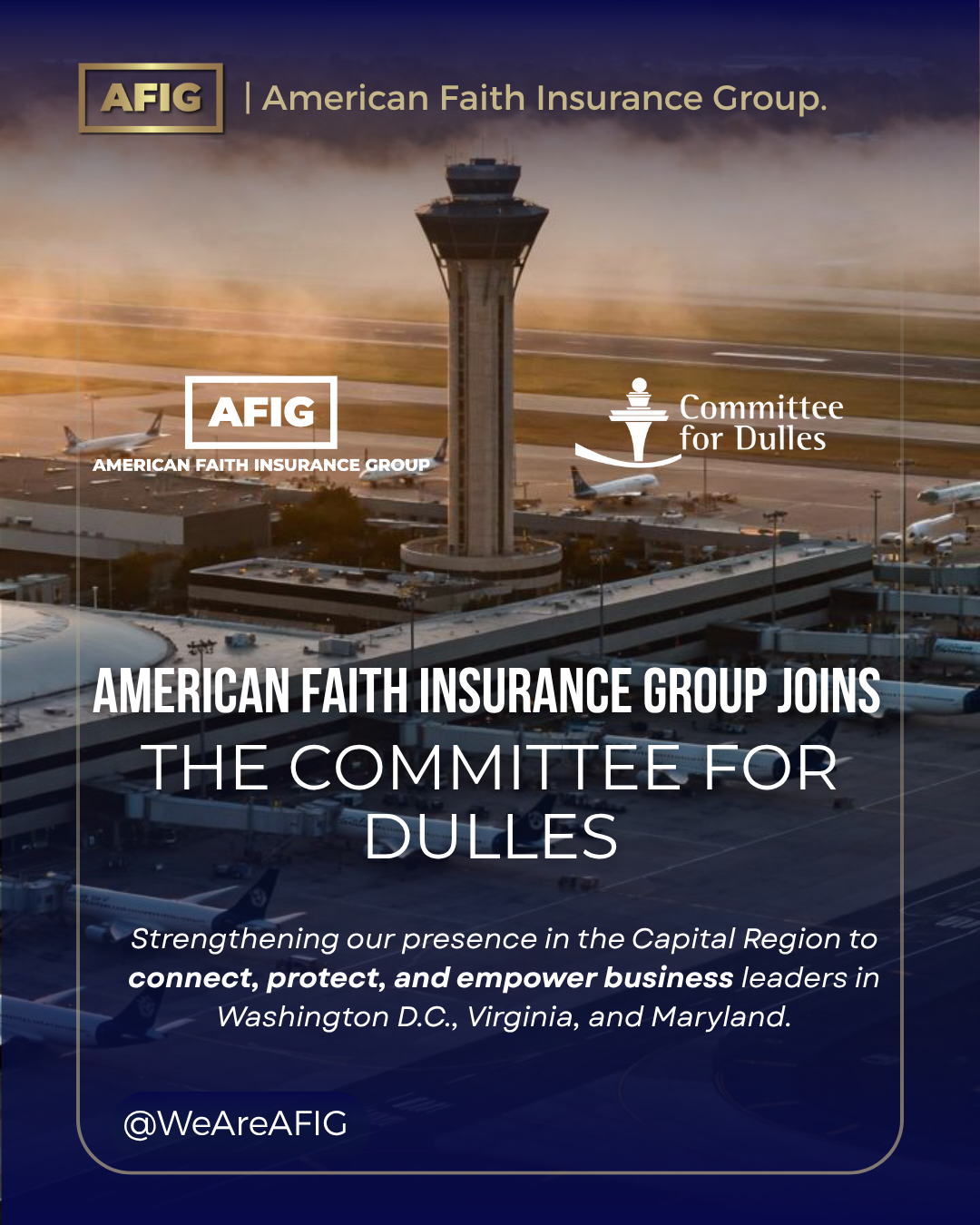 American Faith Insurance Group is proud to join the Committee for Dulles — one of the most respected business and civic institutions in the Washington D.C. metropolitan area — marking a decisive step in our expansion across the DMV market.