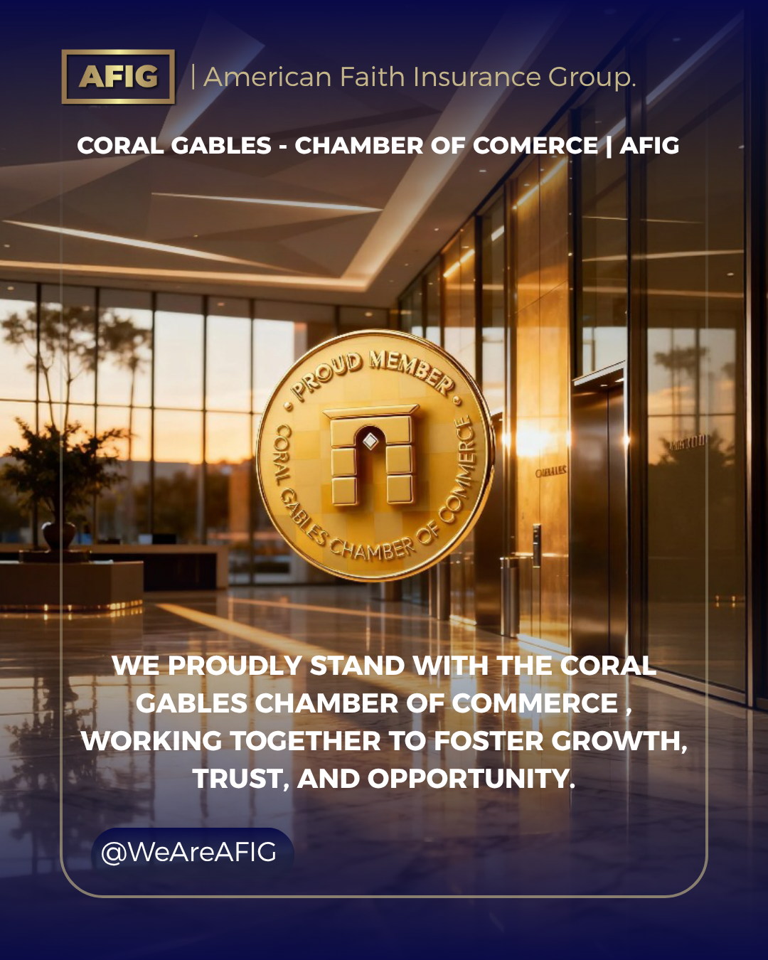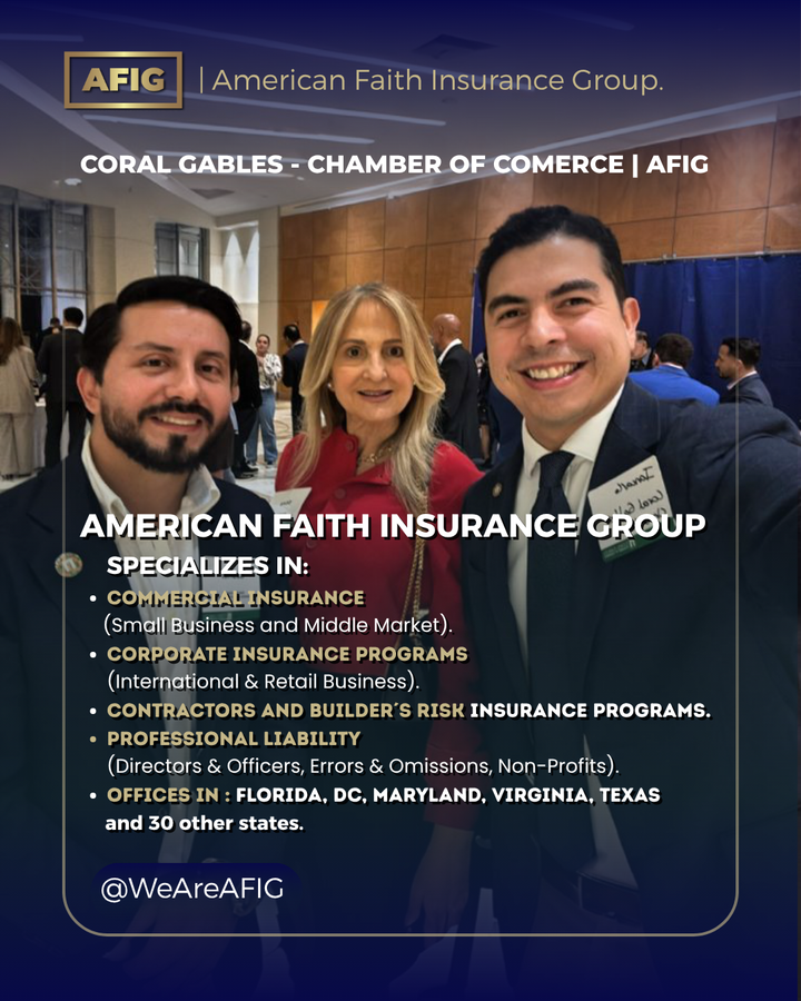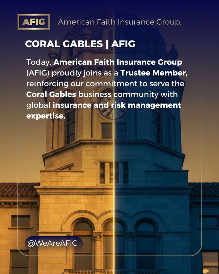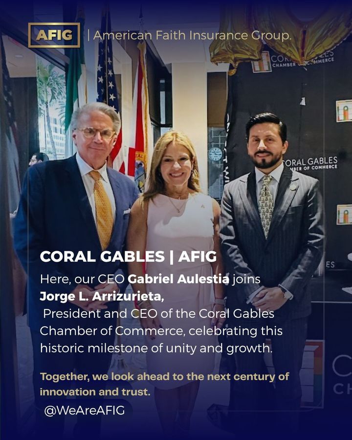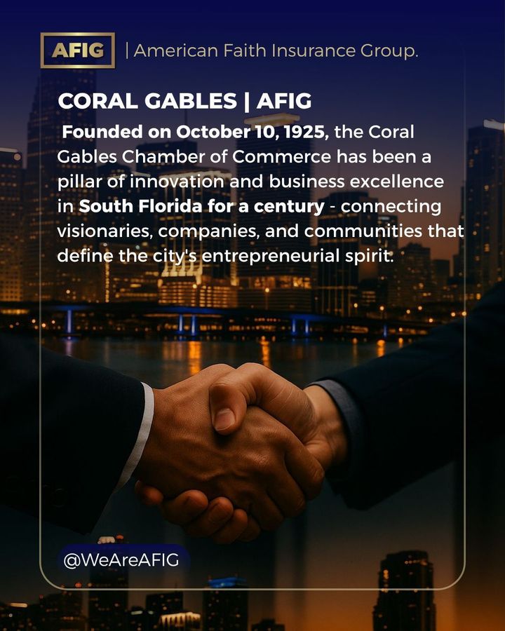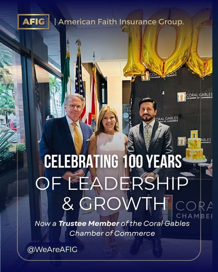 American Faith Insurance Group proudly becomes a Trustee Member of the Coral Gables Chamber of Commerce, celebrating its 100th Anniversary (October 10, 1925 – 2025).